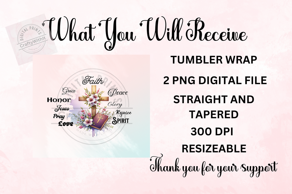 Enhance your tumbler with this Religious Tumbler Wrap Design. This 20oz Sublimation Tumbler Design features a Cross Flower Design in PNG format, perfect for Christian-themed tumblers. Download this wrap today for an instant and meaningful addition to your collection.