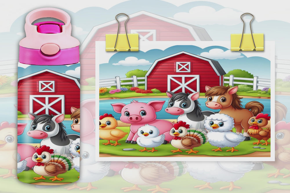 Farm Animals Kids Flip Top Sippy Cup Design - Digital Download