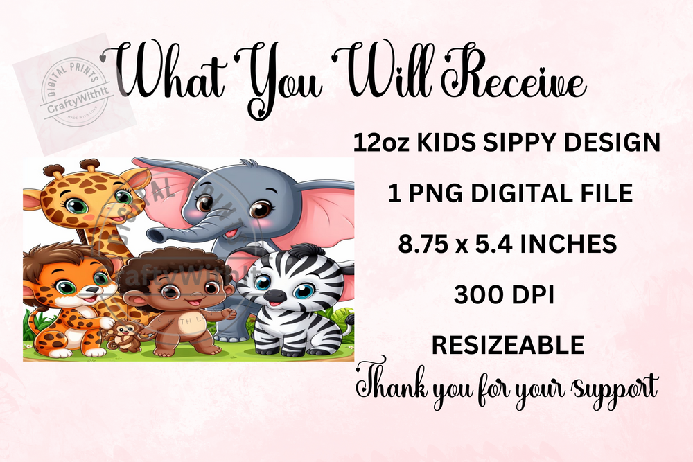 Make mealtime fun and educational for your little one with this Zoo Animals 12oz Sublimation Sippy FlipTop cup. Featuring adorable safari animals like elephants and zebras, this sippy cup is perfect for teaching your child about different animals. The sublimation PNG file allows for easy customization, and it's available for instant download. Get this cute and educational tumbler template today and make mealtime a safari adventure!