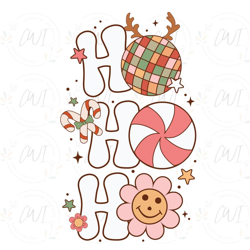 Retro Style Ho Ho Ho is a Full Color DTF, Heat Transfer, Ready To Apply, Direct To Film, Bulk Image Printing