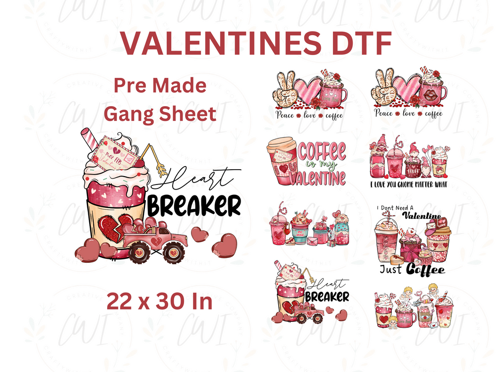 Valentine Pre Made Gang Sheet is a 22x30 sheet of 8 images pre selected for you to order.