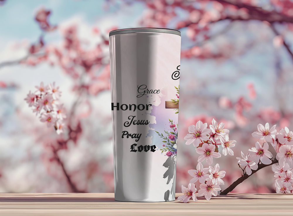 Enhance your tumbler with this Religious Tumbler Wrap Design. This 20oz Sublimation Tumbler Design features a Cross Flower Design in PNG format, perfect for Christian-themed tumblers. Download this wrap today for an instant and meaningful addition to your collection.