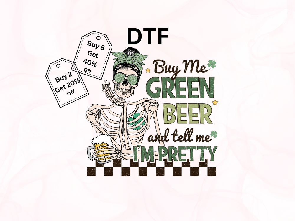 St. Patrick's Day - Buy Me Green Beer Skeleton - Direct To Film Transfer